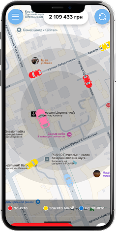 Відкрий застосунок та знайди найближчу машинку на карті.
